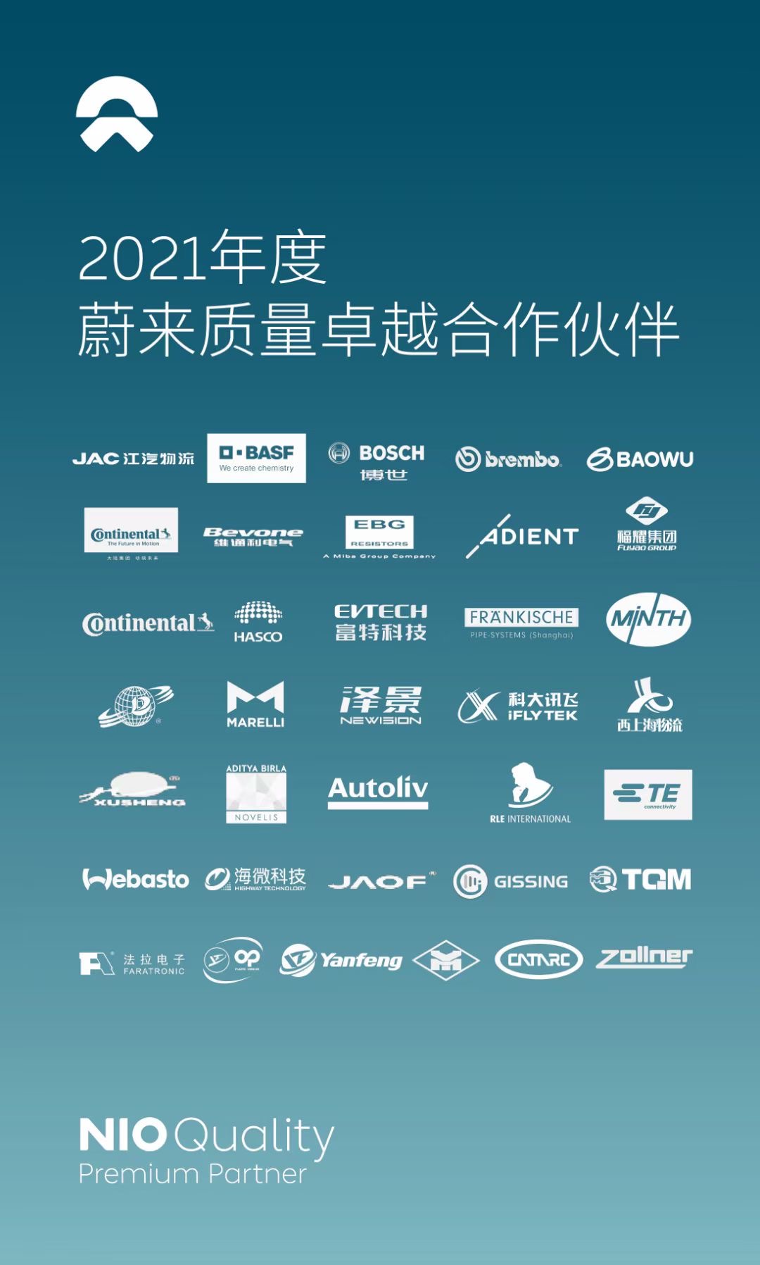 NQPP是蔚來首個對新能源汽車行業合作伙伴的全方位質量評估獎項,是蔚來對于合作伙伴的最高認可,也是蔚來頒發給合作伙伴的最重量級的獎項。