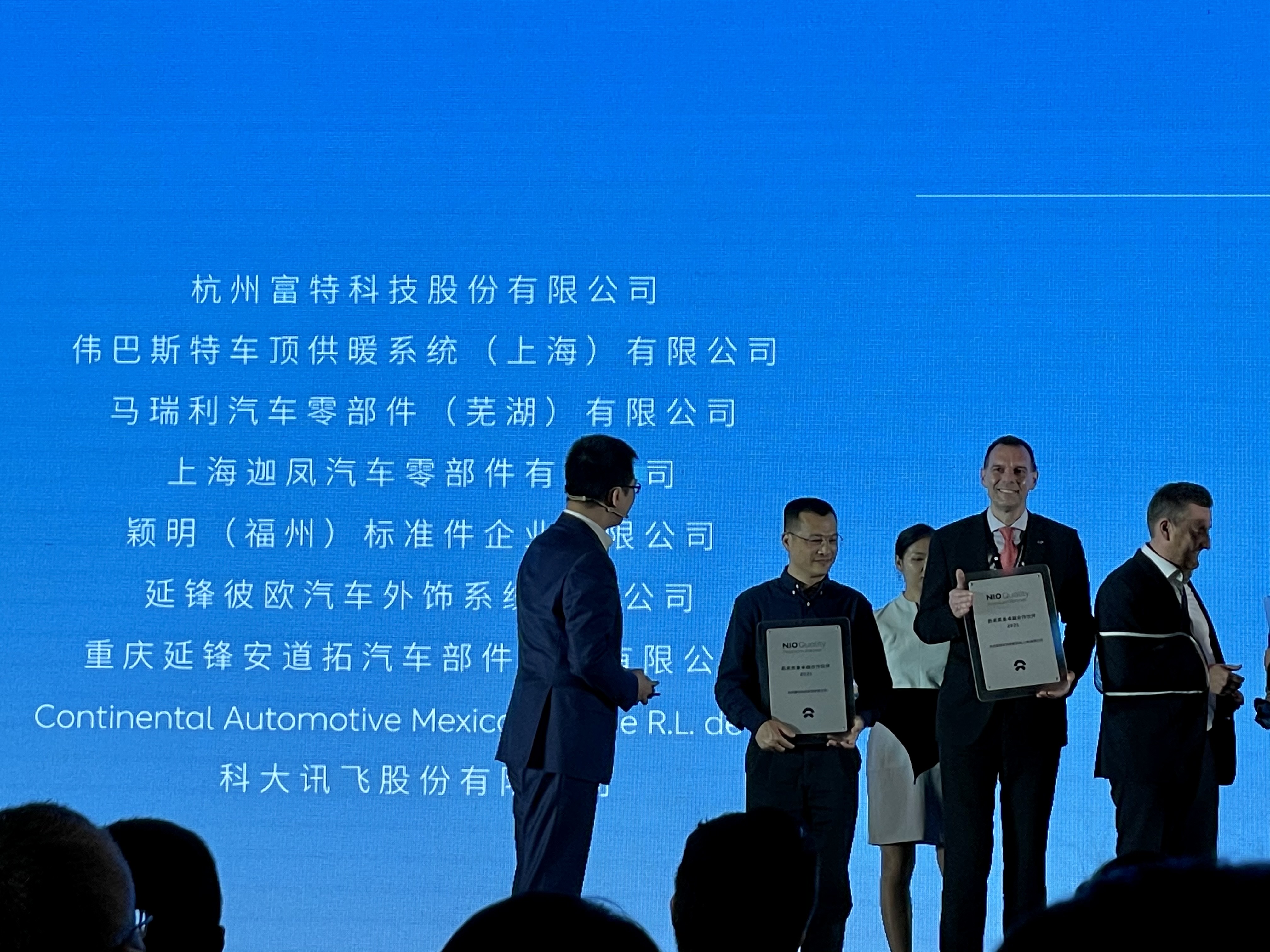 大會現場,蔚來汽車執行副總裁沈峰先生,親自為富特科技頒發了NIO Quality Premium Partner(NQPP蔚來質量卓越合作伙伴獎項),表達了對富特科技產品的巨大信任和肯定。