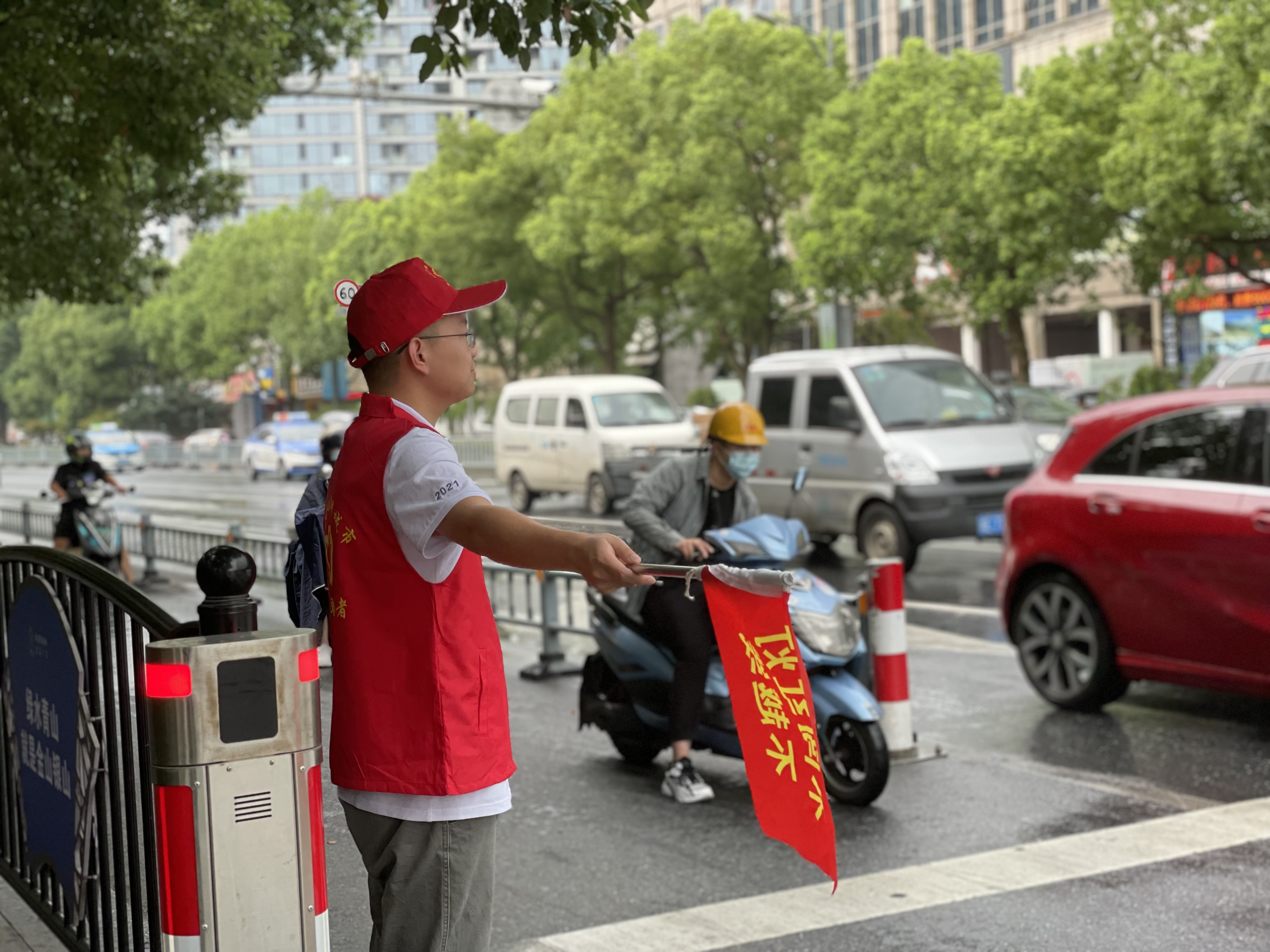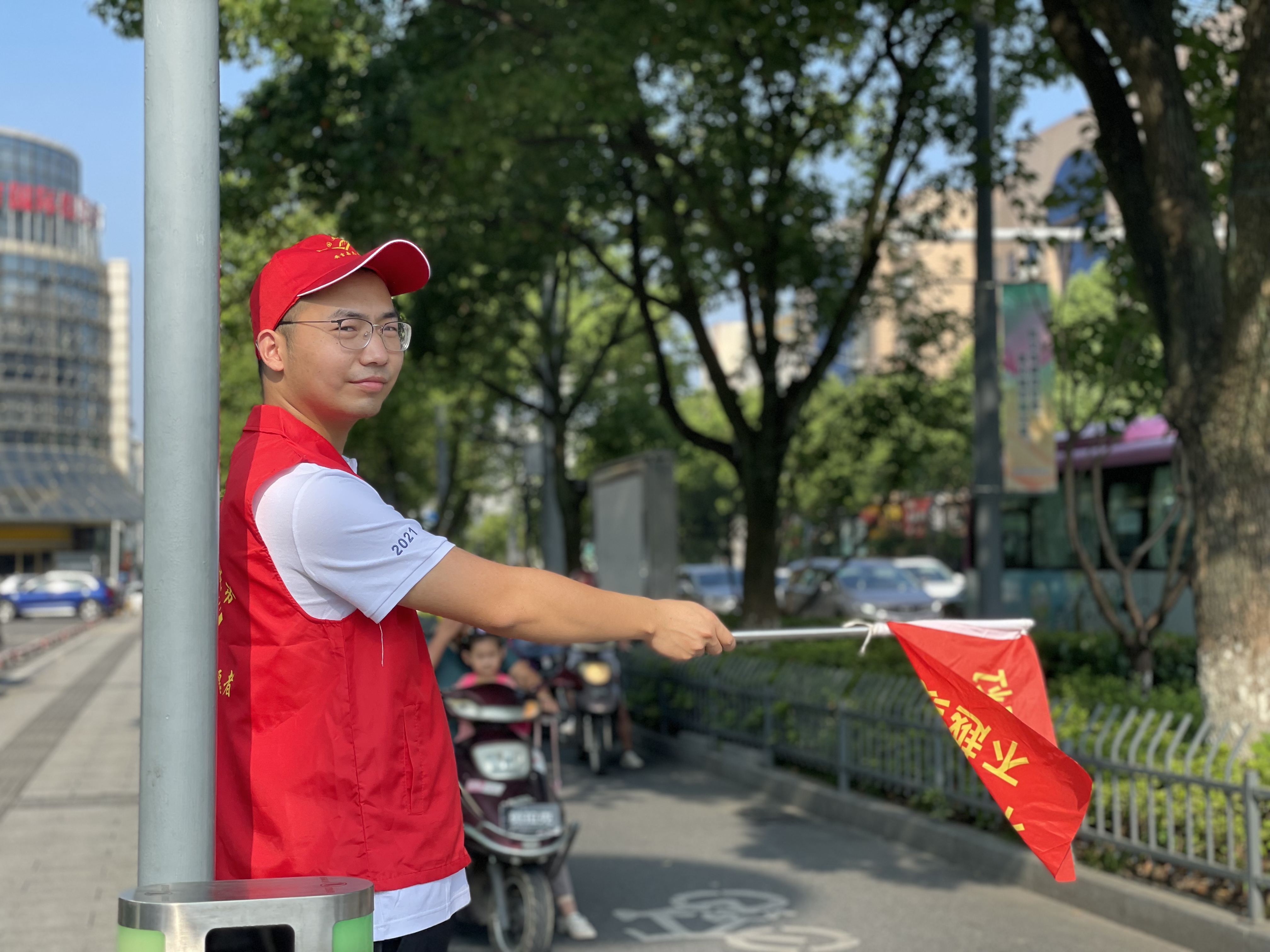 上午的安吉,天氣炎熱、陽光刺眼,志愿者們卻站的筆直、面帶微笑。他們說紅色的志愿馬甲穿在身上的時候,就代表著身上肩負(fù)著保衛(wèi)城市的使命感與作為富特人的社會責(zé)任感。